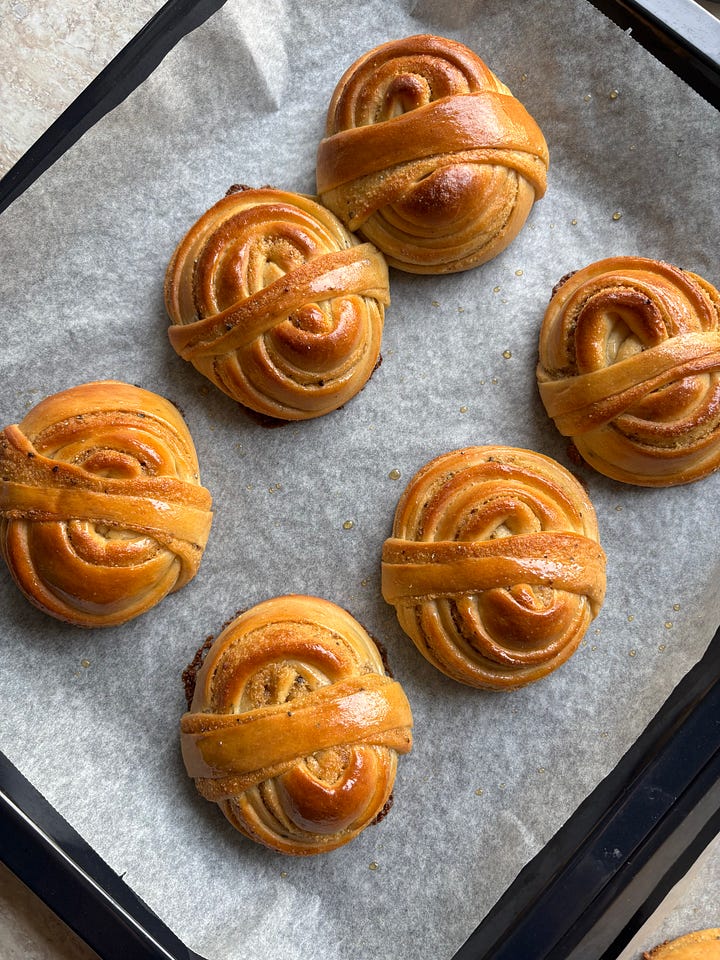 These buns are a 10/10. I’ll never try to claim that I can make cardamom buns as good as Juno the bakery in Copenhagen, but these come pretty close for being home-made by a hobby baker.